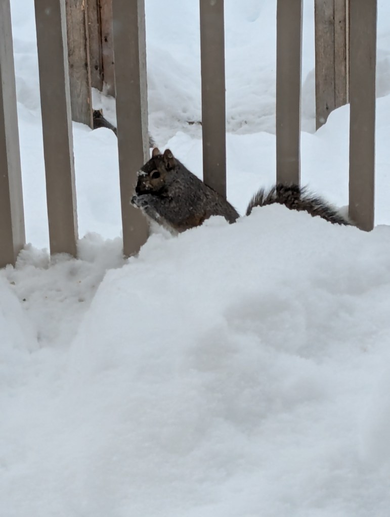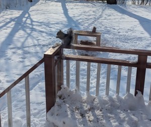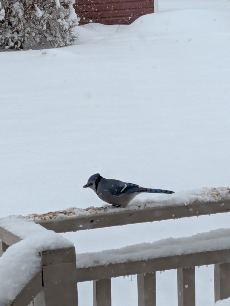 Meanwhile, I have been keeping busy with some of the household maintenance. With snow one day, melting temperatures the next and rain in the forecast, I have to keep the drain pipes clear, the bird feeder stocked and the sidewalks shoveled. (Again, I must give thanks to the small town generosity as we have a guy from down the street who plows our laneway.)