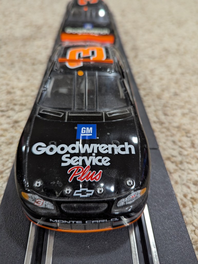 I ended up purchasing a Joey Logano diecast and one for Kenny Wallace. The latter was a cool pick-up since it was similar to the paint scheme that Wallace ran in the 2000 Winston 500 at Talladega when he helped push Dale Earnhardt from 18th to 1st in four laps for Earnhardt’s final win. The irony is that I picked up the Earnhardt Talladega win diecast at another store. (I’d had one for several years but this was a back-up, if you will.)