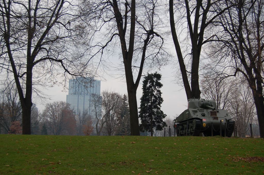 1st Hussars Sherman Tank in Victoria Park in London, OntarioLog cabin at Longwoods Road Conservation Area near Delaware, OntarioCanadian Warplane Heritage Museum in Mount Hope, OntarioUnion Station and CN Tower in Toronto, OntarioThe Thames River and the old mill in Thamesford, OntarioJet Aircraft Monument in Germain Park in Sarnia, Ontario